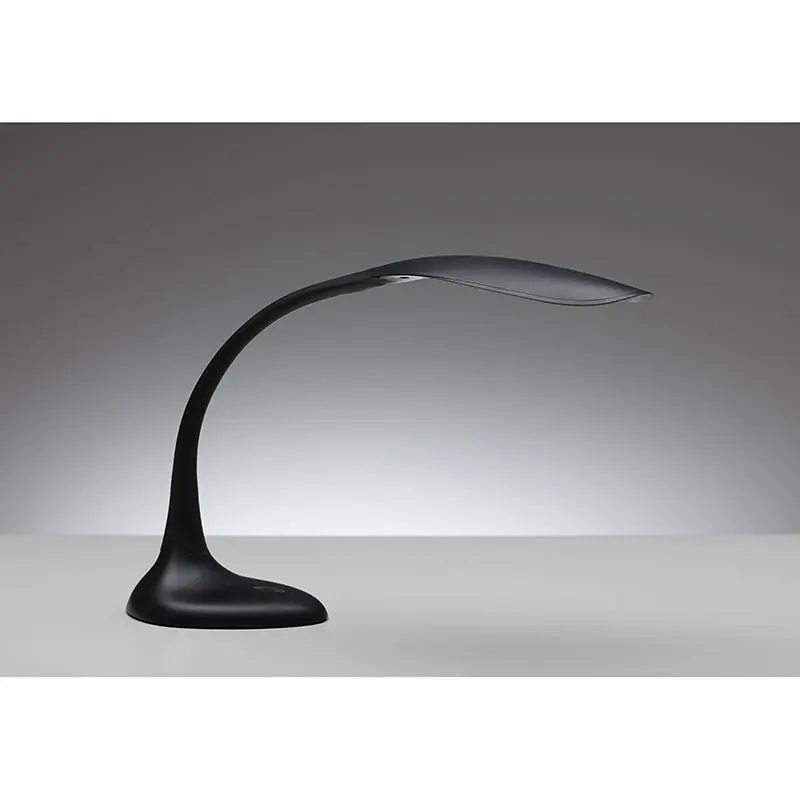 Eleganta galda lampa ar jaunāko LED diožu tehnoloģiju, kas nodrošina ļoti zemu enerģijas patēriņu. Gaismas krāsas temperatūra ir 3050 Kelvini. Nodrošina asimetriski izgaismotu darba laukumu, laba un silta gaismas izkliede. Ērti pielāgojama nepieciešamā lampas darba pozīcija. Dubultā šarnīra kāts ir aprīkots ar kompensācijas atsperēm, kas ērti ļauj plaši variēt lampu nepieciešamajā pozīcijā. Lampas galvu var pielāgot gan horizontāli, gan vertikāli. Slēdzis atrodas uz lampas galvas. Izturīga, 2.5cm bieza metāla pamatne, kas nodrošina izcilu stabilitāti. Lampu iespējams lietot arī pieskrūvējot pie galda virsmas.