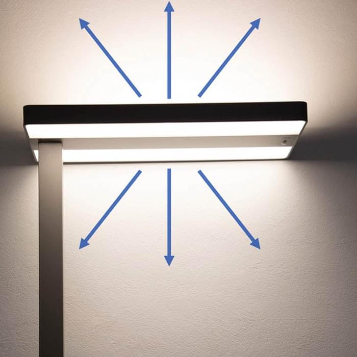Var izmantot kā tiešo galda apgaismojums un netiešu telpas apgaismojums. Gaismas padeve aptuveni 50% uz augšu un 50% uz leju.