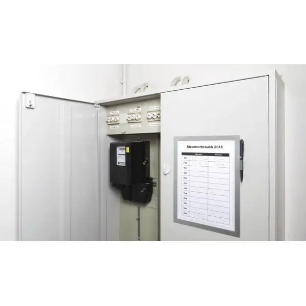 Pašlīmējošs informācijas rāmis piezīmēm, ar magnētisku priekšējo apmali. Pierakstus un piezīmes var veikt neizņemot lapu. Rāmī var ievietot līdz 5 A4 formāta lapām. Tās viegli nomaināmas. Vienkārša un ērta informācijas papildināšana – rāmja sānā rakstāmlietas turētājs, kurā var ievietot jebkuru rakstāmlietu ar klipsi. Rāmi var pielīmēt uz tīras, gludas virsmas. Var novietot gan vertikāli, gan horizontāli. Sudraba krāsā. Formāts A4. Iepakojumā 1 rāmis.