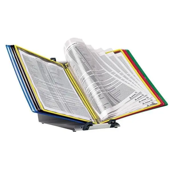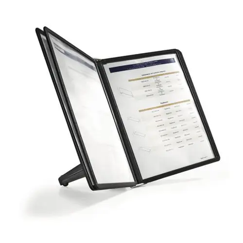 Universāla sistēma brošūru, katalogu un citu reklāmas materiālu prezentācijai. Galda statīvs ar 3 vertikālām kabatām. Dūmakaini caurspīdīgas, viegli savietojamas plastmasas kabatas ar funkcionālu priekšējo daļu. Statīvs piemērots A4 formāta materiāliem.